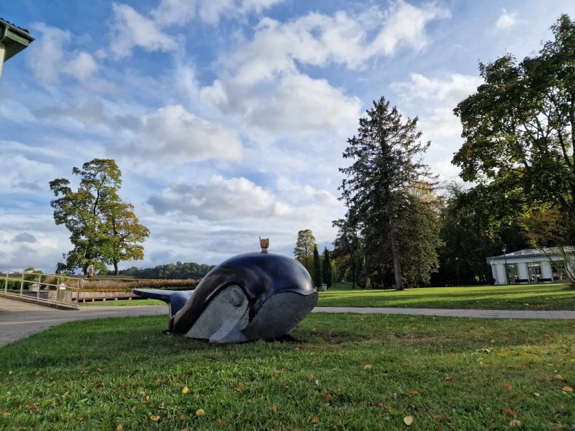 Į Birštoną po „SPA procedūrų“ sugrįžo kurorto simbolis – banginuko skulptūra
